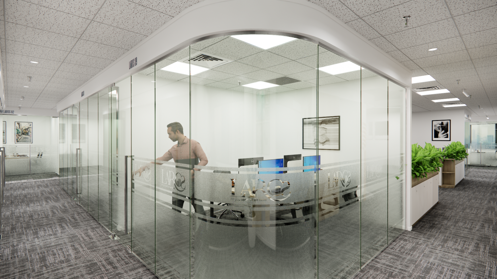 Vách ngăn kính cường lực: Tối đa hóa ánh sáng tự nhiên, tạo sự kết nối thị giác giữa các phòng ban mà vẫn đảm bảo tính cách âm cần thiết.